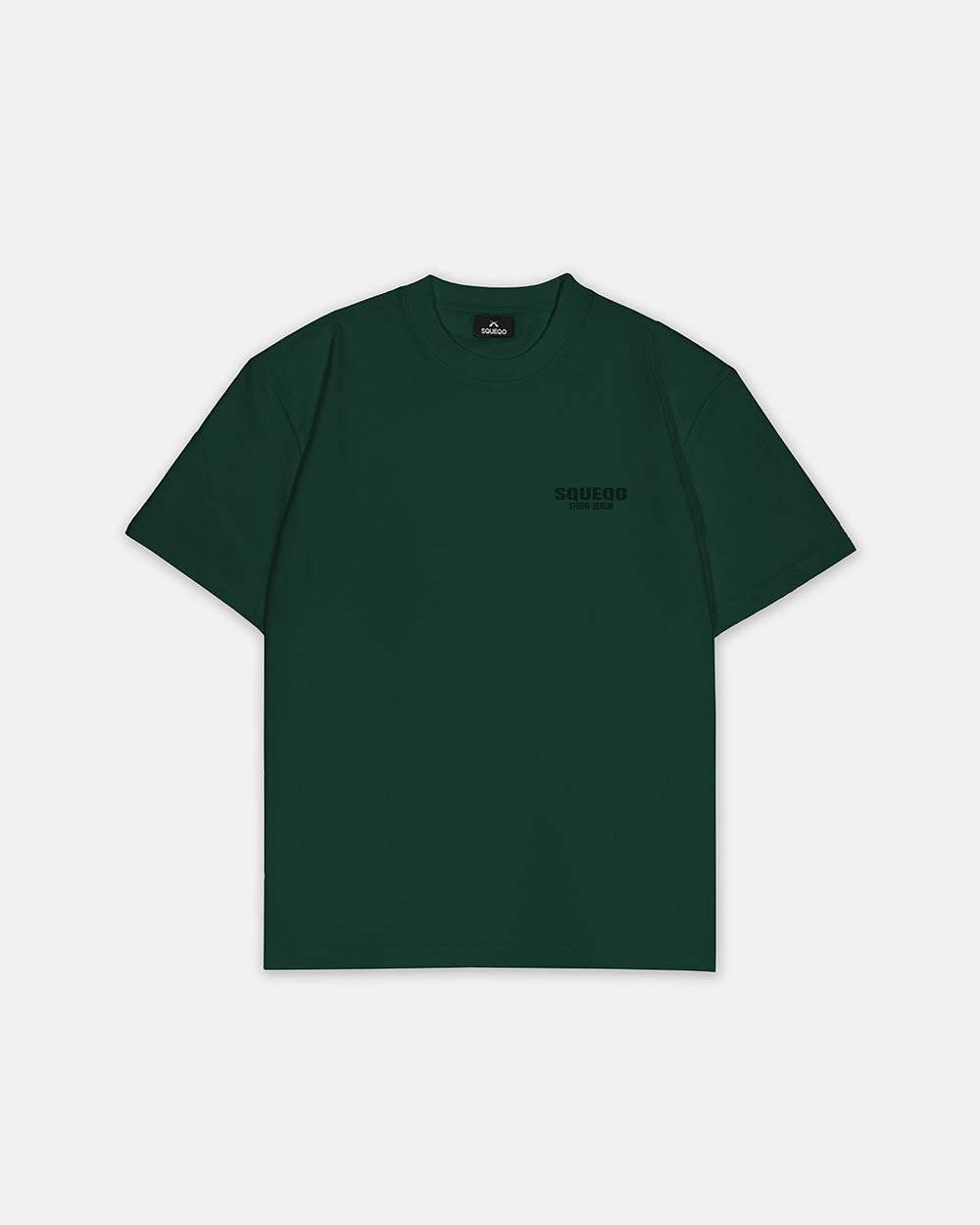 Dunkelgrünes T-Shirt mit monochromem Studio Berlin SQUEQO Print, Vorderansicht.