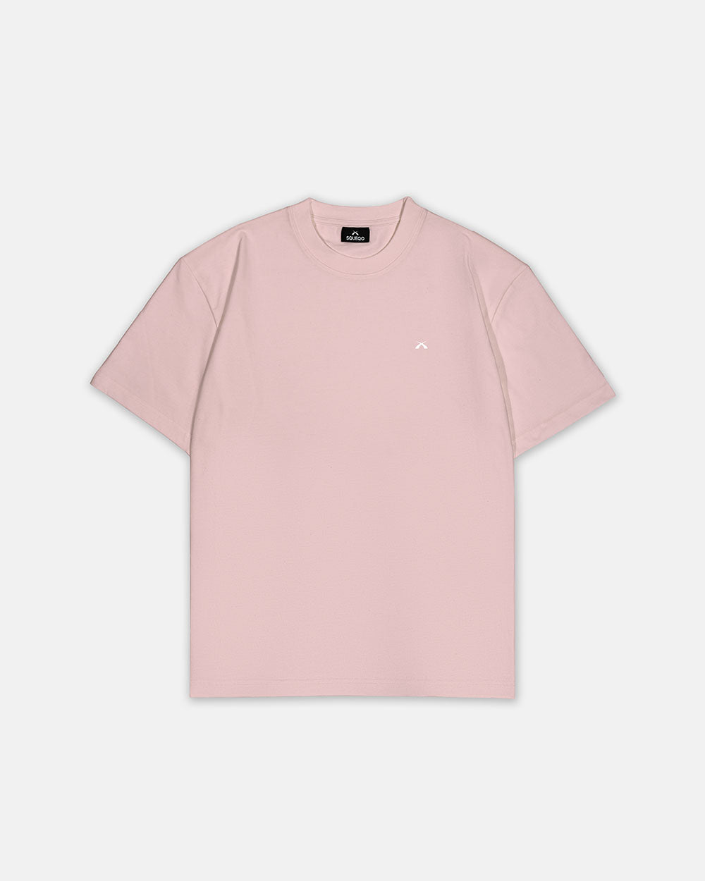 Unisex T-Shirt in zartem Hellrosa mit kleinem weißen Logo – dezent, elegant und vielseitig kombinierbar. Relaxed Fit mit Rundhalsausschnitt; sitzt locker und fühlt sich weich an für hohen Alltagskomfort.