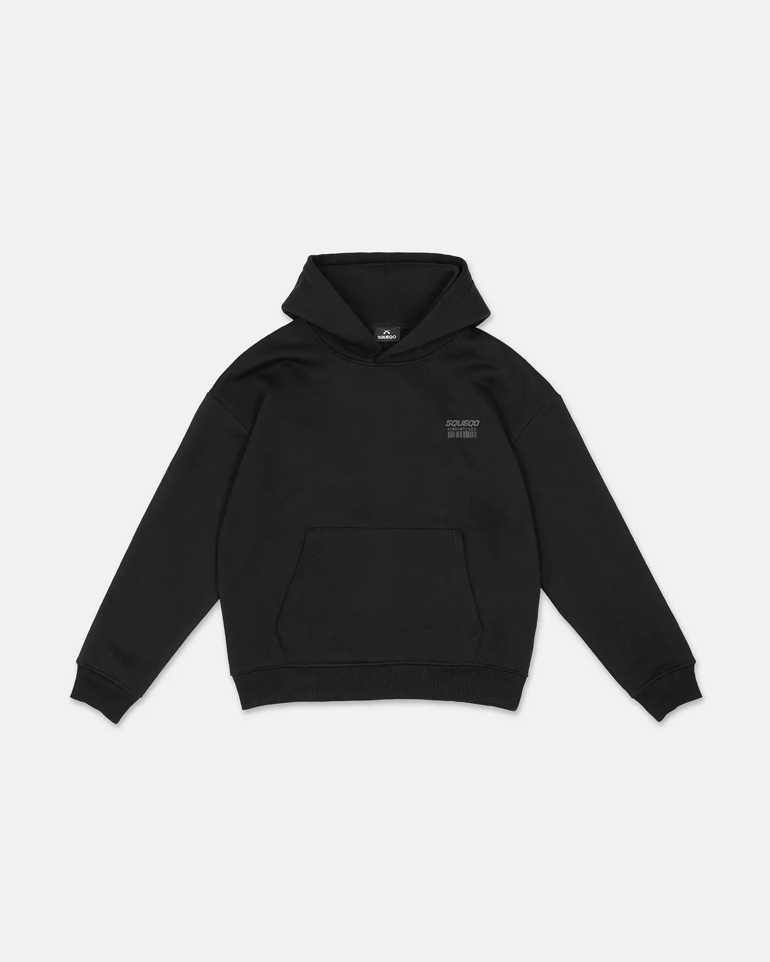 Der Schnitt // Fit 02 (Optimized) Dieser Hoodie wurde radikal neu berechnet: Boxy und weit an den Schultern für den lässigen Vibe, aber verkürzt im Rumpf. Er endet genau auf der Hüfte und verlängert so optisch die Beine. Die Ärmel sind volumenoptimiert, damit sie nicht über die Hände rutschen.